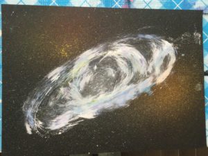 黒い色画用紙に銀河を表現。